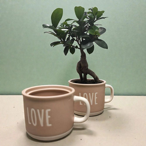 Керамична кашпа LOVE – кашпа за интериорна употреба, в цвят бежово-розово и бяло.